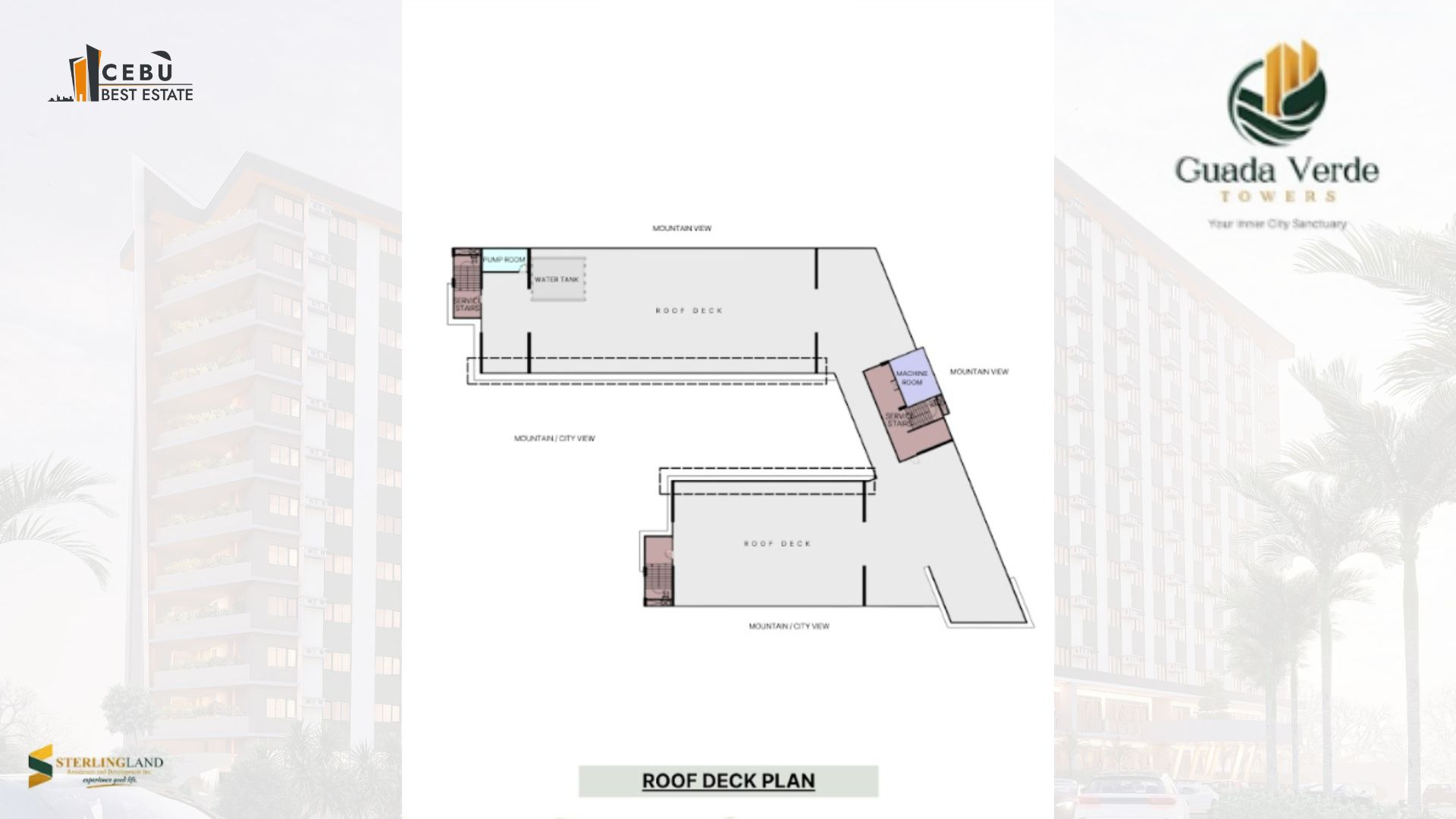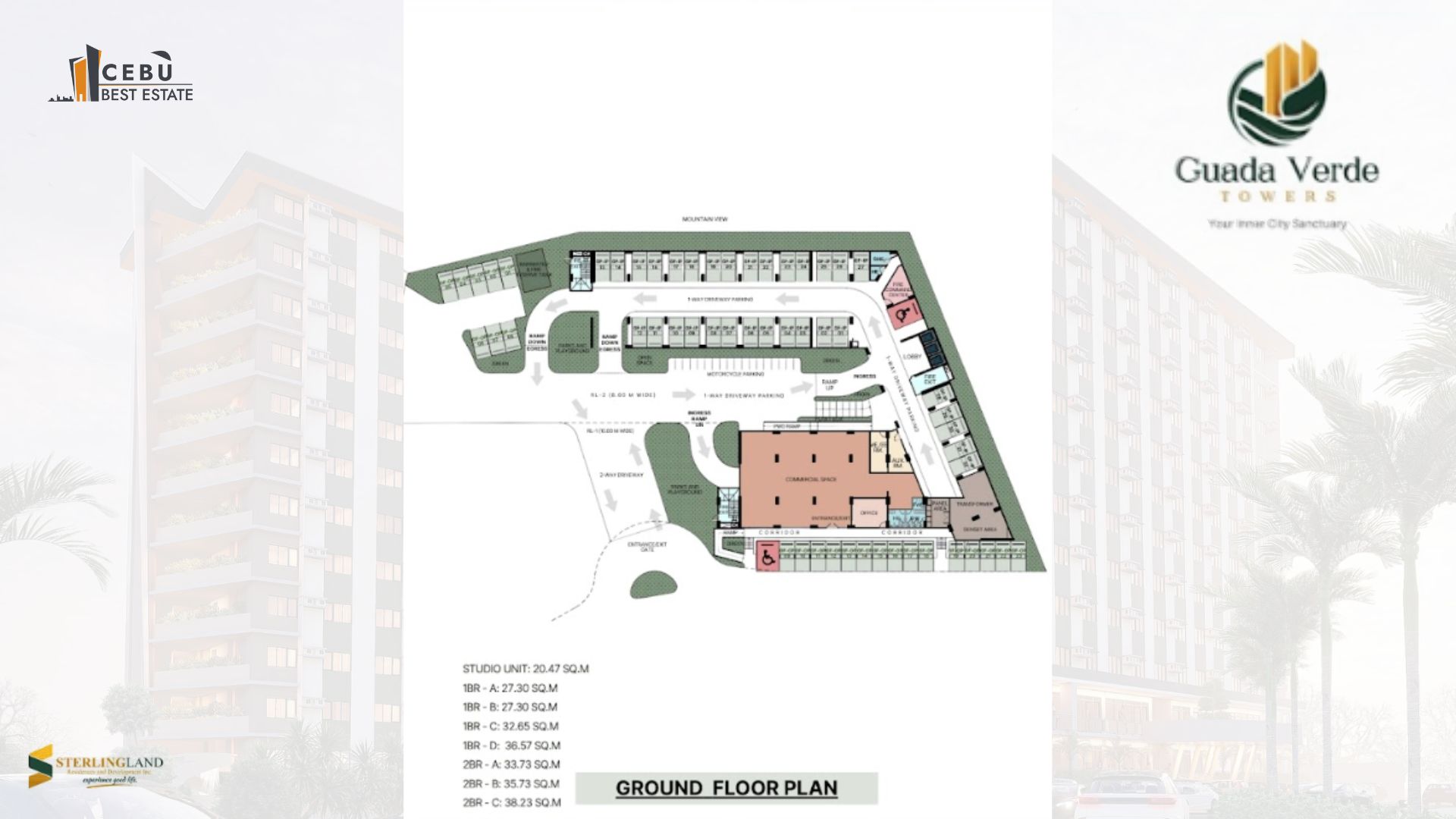 Guada Verde Towers by Sterling Land Residences & Development, Inc. offers a refreshing balance of nature and modern city living. Nestled in a serene community behind the historic Our Lady of Guadalupe Church, this three-tower mid-rise development redefines what it means to come home — where every day begins with calm and ends with convenience.