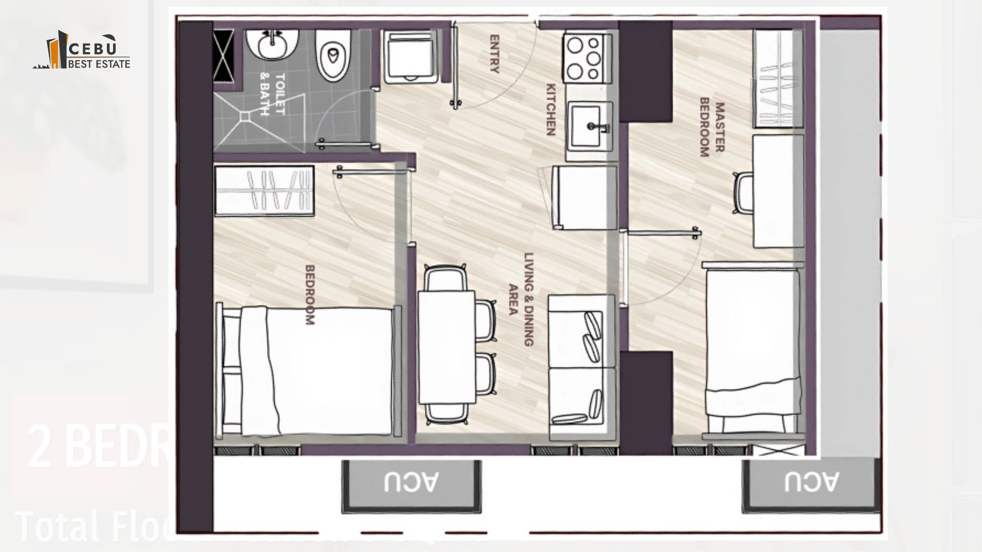 - 2-Bedroom Unit: 33.73 sq.m. – 38.23 sq.m.