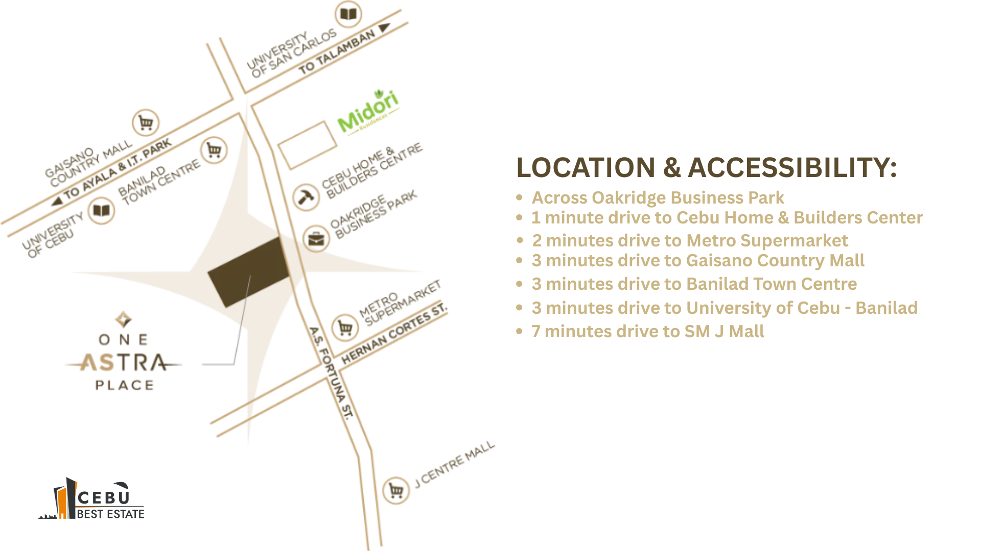 • 3 minutes drive to University of Cebu – Banilad